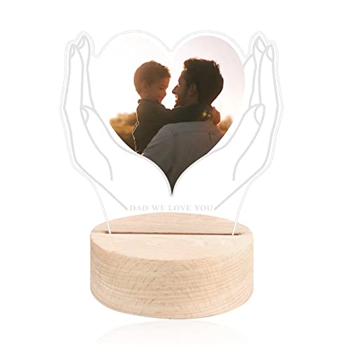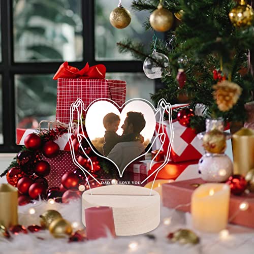 HIWERAN Luce Notturna con Foto Personalizzata, Lampada Personalizzata con Cuore d'amore, Placca d'amore Personalizzata con Lampada in Acrilico e Base in Faggio