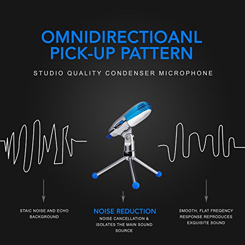 Hiwill, microfono a condensatore USB, per podcast e registrazioni sul computer portatile, nessun bisogno di interfaccia audio e alimentazione phantom, Blue