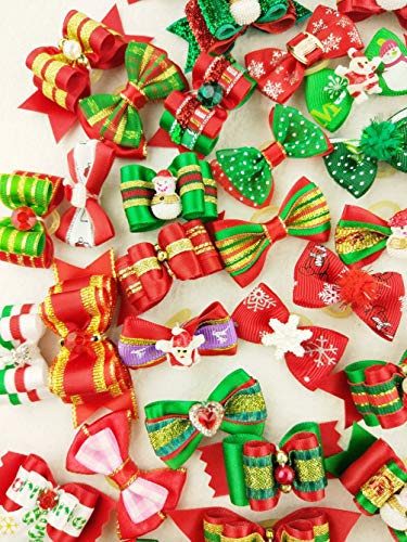 Hixixi 50 fiocchi per capelli per cani e gatti in 3D con strass e elastici in gomma, accessori per la toelettatura di Natale