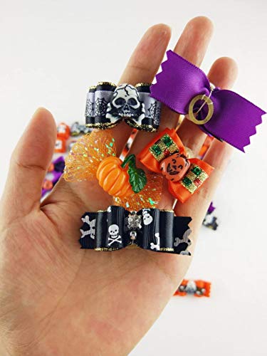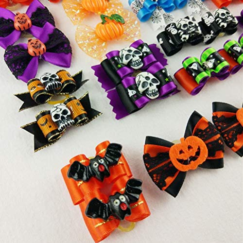 Hixixi - Fiocchi per capelli per cani, 24 pezzi, per Halloween, design per cuccioli, accessori per capelli, con elastici in gomma