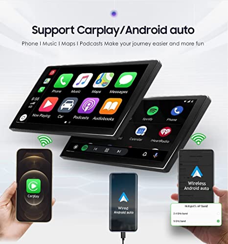 【Apple CarPlay/Android Auto, Funzione MirrorLink】 Compatibile con Wireless Apple CarPlay, wireless e wireless Android Auto. Devono solo utilizzare il cavo WiFi/WLAN/Bluetooth/USB per connettersi allo smartphone per accedere alle funzioni telefoniche. Eseguire la navigazione online, Effettua chiamate, invia/ricevi SMS, ascolta musica/podcast in CarPlay o Android Auto mentre si concentra sulla guida.