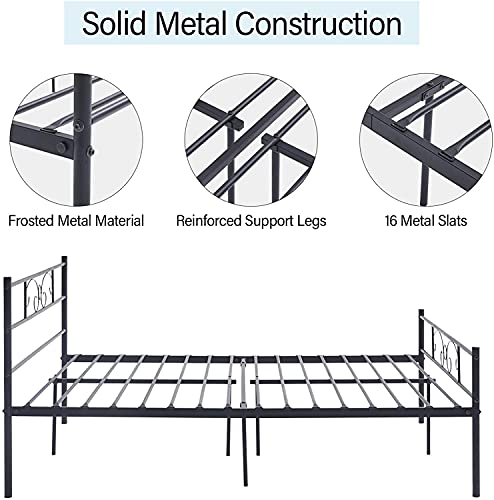 【Telaio per letto matrimoniale】Il telaio in metallo non richiede una base a molla a forma di scatola. Il colore della struttura del letto nero sarà molto bello con il tuo materasso. Ideale per decorare camere da letto e dormitori