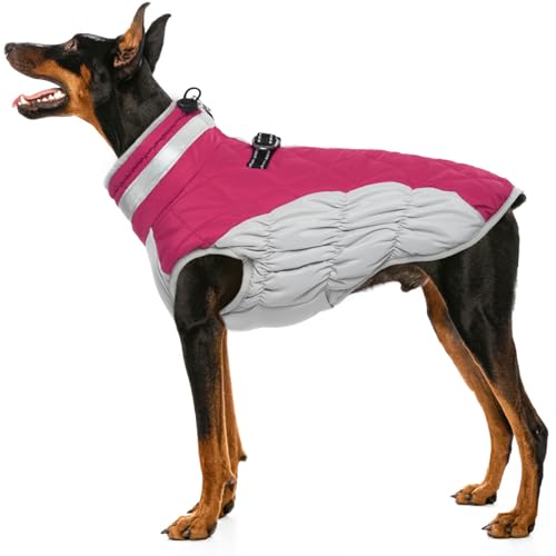 Hjumarayan Cappotto Cane -Impermeabile Cappottino Cane Taglia Media Giubbotto Cane con Imbracatura Cappottino Imbottito per Cane con Zip Cappottini per Cani Taglia Media (Rosa L)
