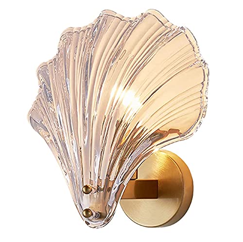 HJXDtech Applique da Parete Moderna in Cristallo Conchiglia Lampada da Parete in Metallo Ottone Illuminazione da Parete in Vetro per Cuarto Sala Cuarto de baño (Ambra)