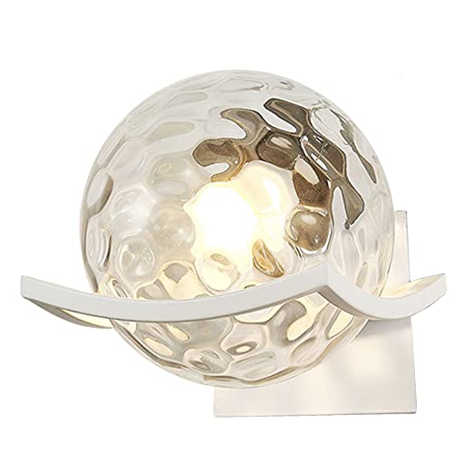 HJXDtech Applique da parete moderna con paralume in vetro increspato, Lampada da parete per interni con portalampada E27 per comodino, bagno, veranda (Cornice bianca, Trasparente)