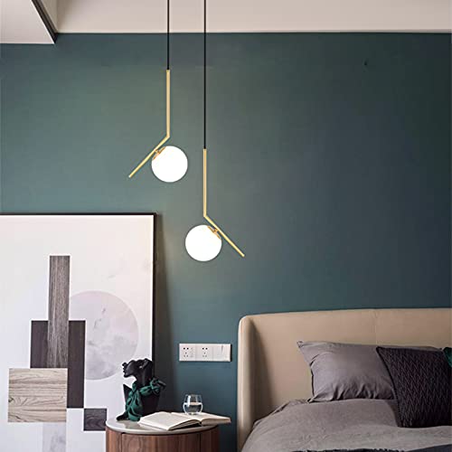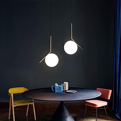 HJXDtech Lampada a sospensione moderna a sfera in vetro bianco, lampada da soffitto in metallo ottone, Lampadario da cucina per soggiorno e sala da pranzo (2-luci)