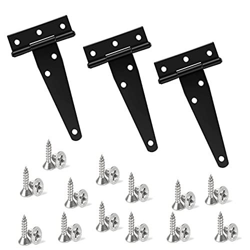 HJYZY 3 pezzi Cerniere a t per Porte in Legno Cardini per Porte in Acciaio inox Cerniere per Ante Cucina Cerniere per Porte con Viti Nero (5 pollici)