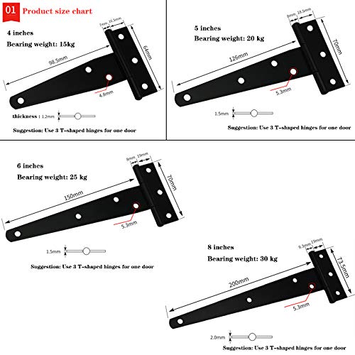Design perfetto: facile da installare e rimuovere. Apri e chiudi perfettamente la porta. Queste cerniere a forma di T offrono un supporto sufficiente anche sulla porta più pesante. Hanno una forte capacità portante, ogni cerniera a T può sopportare un peso di 20 kg.
