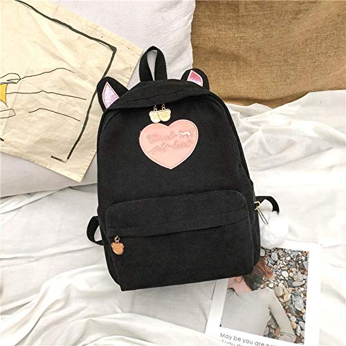 HKHJN Borsa a Tracolla for Capelli in Velluto a Coste Ricamata a Forma di Cuore con Zaino Leopardato (Color: Black, Size: 28cm13cm38cm)