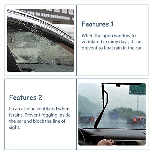 Protezione eccellente: l'elaborazione 3D semitrasparente può bloccare efficacemente la luce solare e i raggi UV senza influenzare la linea di vista. È fissato al bordo del vetro del finestrino dell'auto non solo per proteggere il finestrino dell'auto da pioggia e neve, ma anche per evitare il maltempo. E mantieni l'aria fresca, anche quando piove, puoi goderti l'aria fresca.