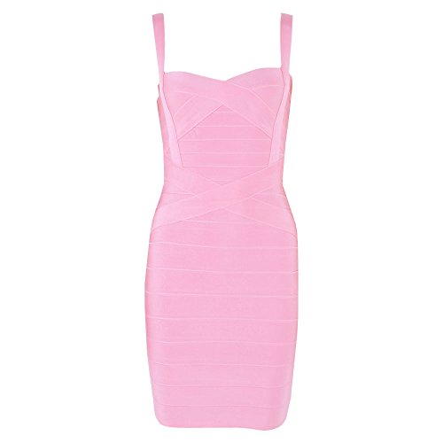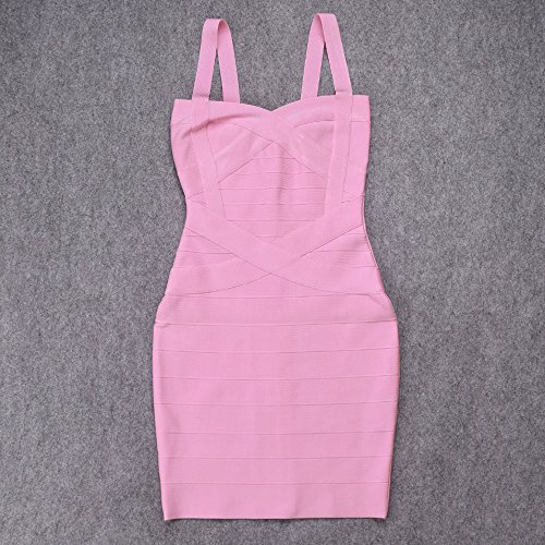 HLBandage Women's Spaghetti Strap Solid Mini Rayon Bandage Dress(XS,Rosa)