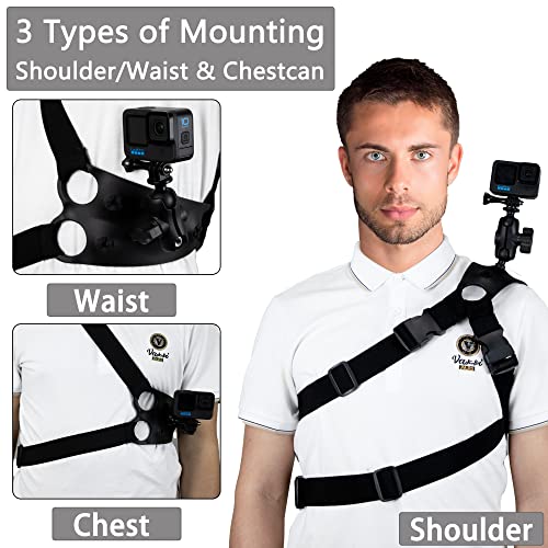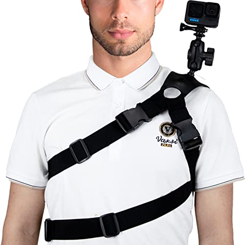 Durevole e stabile e sicuro: cinturino stabile e versatile, la base di montaggio è realizzata in resistente plastica ABS, robusta imbracatura utilizza forti cinghie elastiche di 38 mm di larghezza, mantiene sempre la fotocamera sicura e facilmente regolabile con l'hardware di montaggio