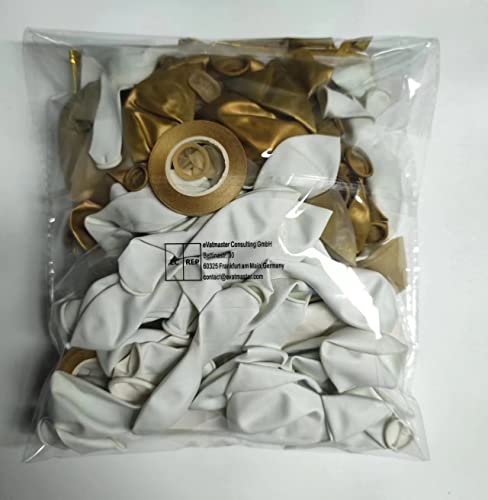 Decorazione per il 50° compleanno: questo set di decorazioni per feste di compleanno contiene: palloncini in oro (5" x 5 pezzi, 10" x 10 pezzi), palloncini bianchi (5" x 10 pezzi, 10" x 25 pezzi, 12" x 8 pezzi), palloncini con coriandoli dorati (10" x 8 pezzi, 12" x 8 pezzi), palloncino in pellicola 50 anni x 1, ghirlanda Happy Birthday. * 1, nodo. * 11 strumento per la rimozione, 1 catena per palloncini, 1 colla a punto, 1 nastro lungo.