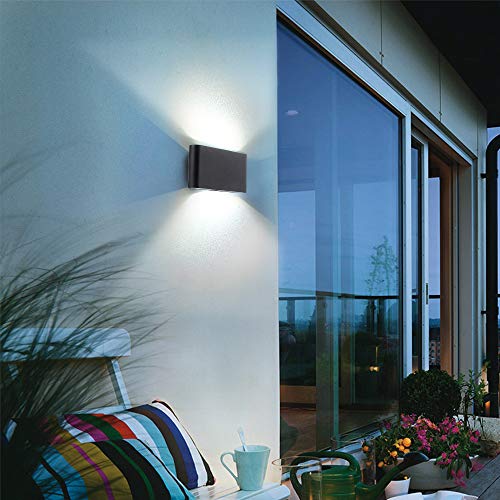 HLFVLITE Applique da Parete per Interni/Esterno 6W LED Moderno Su e Giù Lampada da Parete, Applique da Parete in Alluminio Nero, IP65 Impermeabile, 6000K Bianco Freddo