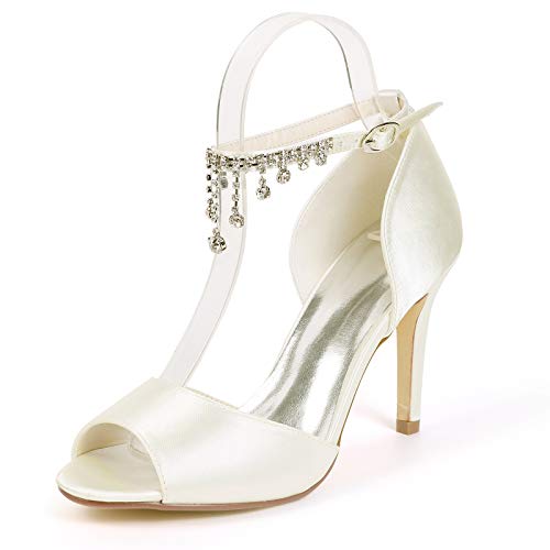 HLONGG Wedding Comodi Tacchi Alti, Sandali Peep Toe Tacchi Alti con Le Scarpe da Sposa in Seta, Tacco Alto Peep Toe Perline Dettaglio Slittamento sulle Pompe,Bianca,US9.5_10/EU41/UK7.5_8
