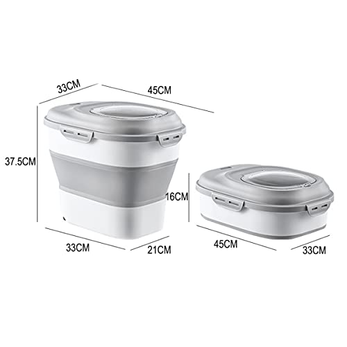 HMAKGG Contenitore Pieghevole Per Cani, Contenitore Cibo Cani Gatto Secco Per Animali Con Coperchio, 2 Ruote, Cucchiaio E Misurino, Ermetico, Grigio