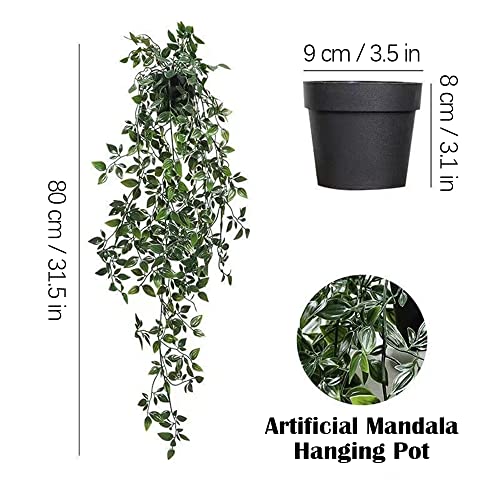 HMIEPRS 2 Pezzi Piante Pendenti Artificiali, Piante Finte in Vaso Mandala, Piante Artificiali da Appendere con Vaso, Simulazione Pianta Appesa Edera Verde per Giardino, Interni, Esterni