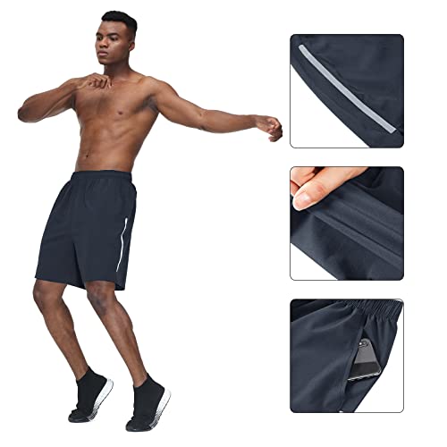 HMIYA Pantaloncini Running Uomo con Zip Tasche Asciugatura Veloce Sportivi Shorts Leggeri e Traspirante Palestra Corsa Calzoncini(Grigio Scuro,EU-XL/US-L