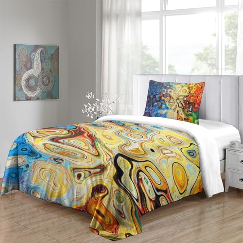 HMLTD Colorato Set Di Biancheria Da Letto Con Stampa 3D Con Federe Copripiumino Con Chiusura A Cerniera Morbida Microfibra Copripiumino Per Letto Copripiumini Single(135x200cm)