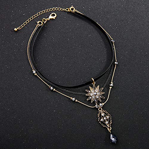HMOOY Collane Multistrato per Donna Collana Girocollo Gotica A Strati Stella Vintage con Catena A Goccia Fatta A Mano Collane Girocollo in Velluto in Pelle per Gioielli da Donna (Star)