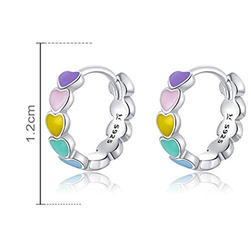 HMOOY Orecchini A Cerchio In Argento Sterling 925 Con Cuore Arcobaleno Orecchini A Bottone Con Cartilagine A Forma Di Cuore Smaltato Color Arcobaleno Carino Per Donne Ragazze (Argento)