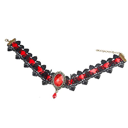 HMOOY Punk Rock Wedding Party Handmade Lace Choker Gothic Retro Lolita Beads Chain Collana con Ciondolo Vampiro per Donne di Halloween (Red)