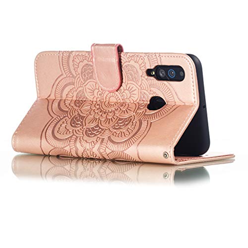 HMTECH Cover per moto E6 Plus,Portafoglio Custodia per Motorola Moto E6 Plus Goffratura Fiore di Mandala PU Pelle Flip Wallet Cover Cover per Motorola Moto E6 Plus,LD Mandala Rosa