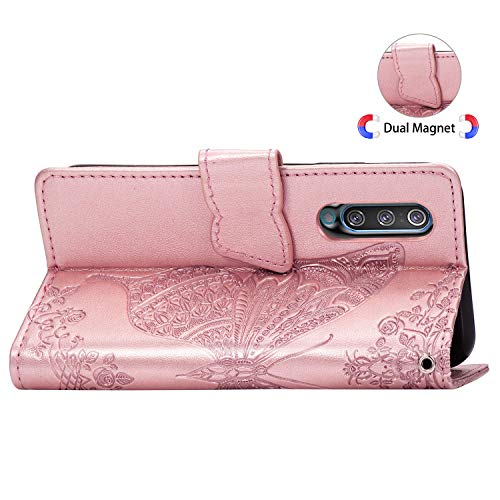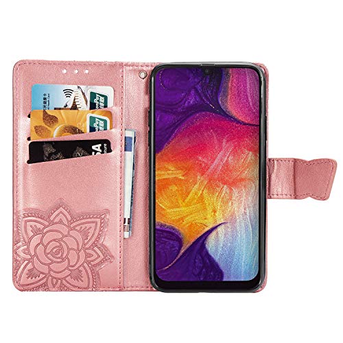 HMTECH Custodia Galaxy A40 Cover Portafoglio,Samsung Galaxy A40 Custodia Fiore Farfalla in Rilievo Wallet Shock-Absorption Magnetica Supporto Protettiva Bumper Cover Leather Flip Cover,SD hudie Rose
