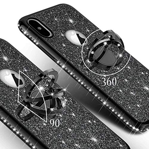 HMTECH Custodia Galaxy M30S,Cover Samsung Galaxy M30S Custodia Glitter Bling Diamond Placcatura in Silicone TPU Cover Morbida con Supporto ad Anello Stand,Black Plating TPU con Stand