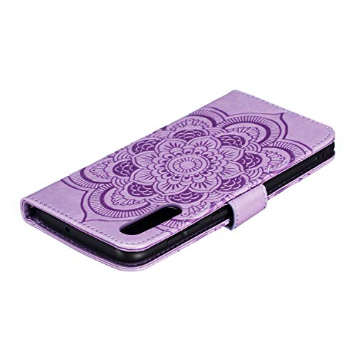 HMTECH Custodia a portafoglio per Samsung Galaxy A7 2018, motivo mandala, in pelle PU, per Samsung Galaxy A7 2018, colore: Viola