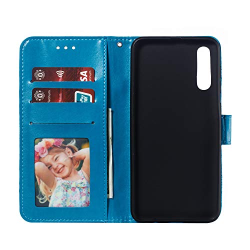 HMTECH Galaxy A70 Custodia Cover Portafoglio,Samsung Galaxy A70 Custodia Fiore di Mandala in Rilievo Wallet Shock-Absorption Magnetica Supporto Protettiva Bumper Leather Flip Cover,LD Mandala Blue