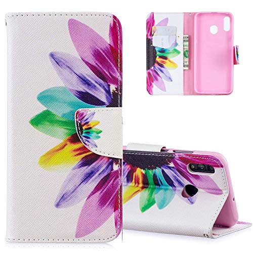 HMTECH Galaxy A10 Custodia Cover Portafoglio,Samsung Galaxy A10 Custodia Pittura Colorata Wallet Shock-Absorption Magnetica Supporto Protettiva Bumper Leather Flip Cover,BF Colorful Sunflower