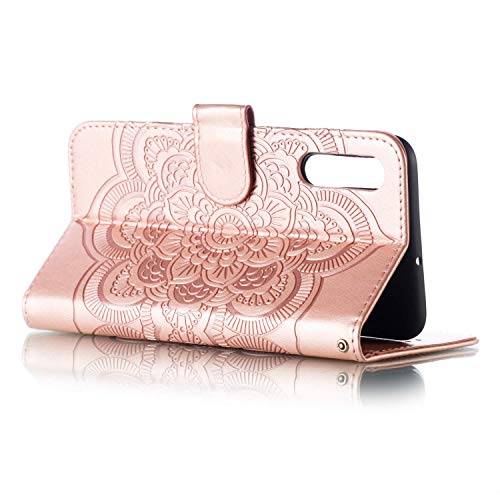 HMTECH Huawei P30 Custodia Cover Portafoglio,Huawei P30 Custodia Fiore di Mandala in Rilievo Wallet Shock-Absorption Magnetica Supporto Protettiva Leather Flip Cover,LD Mandala Rose Gold