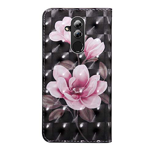 HMTECH Huawei Mate 20 Lite Custodia 3D di Lusso Flower PU Portafoglio in Pelle Flip Stand Titolare della Carta Bookstyle Cover per Huawei Mate 20 Lite,Pink Flower Black Case