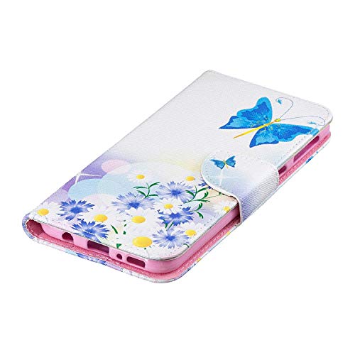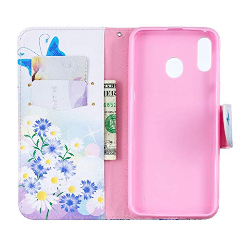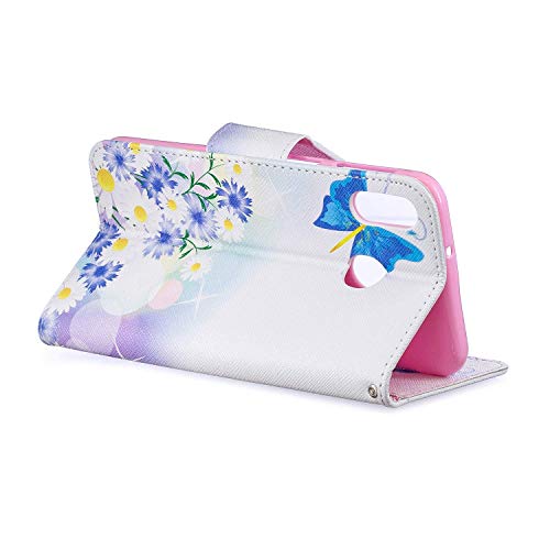 HMTECH Huawei Honor 20 Lite Custodia Cover Portafoglio,Huawei Honor 20 Lite Custodia Pittura Colorata Wallet Shock-Absorption Magnetica Supporto Protettiva Bumper Leather Flip Cover,BF Blue Daisy