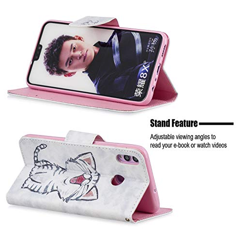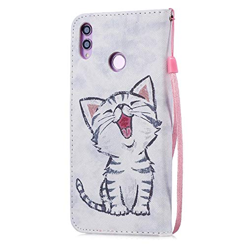 HMTECH Huawei Honor 8X Custodia Simpatico Gatto Sorridente PU Portafoglio in Pelle Flip Stand Titolare della Carta Bookstyle Cover Compatibile con Huawei Honor 8X,Smile Cat HX