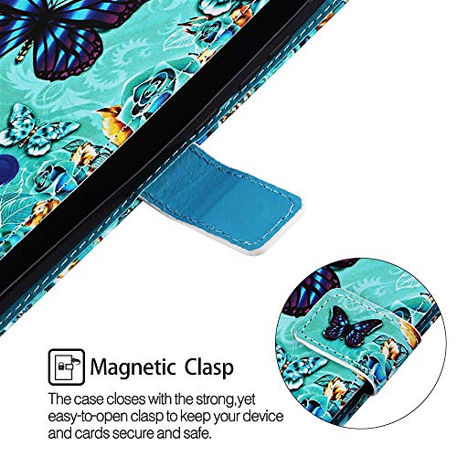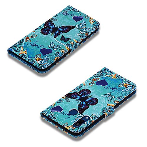 HMTECH Huawei P Smart 2019 Custodia Cover Portafoglio,Custodia Huawei P Smart 2019 Pittura Colorata Wallet Shock-Absorption Magnetica Supporto Protettiva Leather Flip Cover,YB Blue Love Butterfly