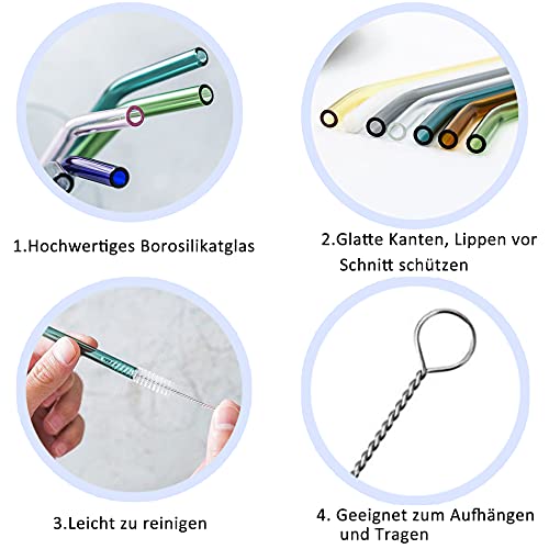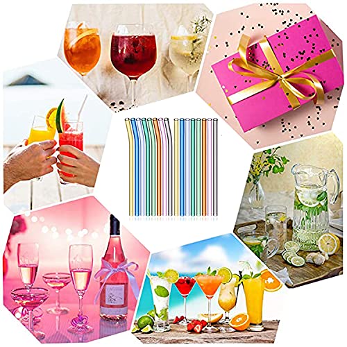 Hnighty Cannucce in Vetro Colorate, Certificazione LFGB, Cannucce Riutilizzabili, 8 Dritte + 8 Curve, Cannucce Colorate, Cannuccia Riutilizzabile 215 * 10 mm, per Frullato Cocktail Bubble Tea Succhi
