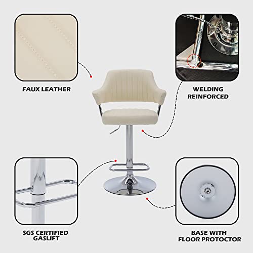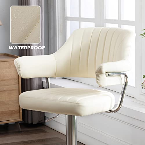 HNNHOME - Sgabello girevole in ecopelle, dal design moderno e imbottito, ideale per bancone da cucina o sala da bar Beige
