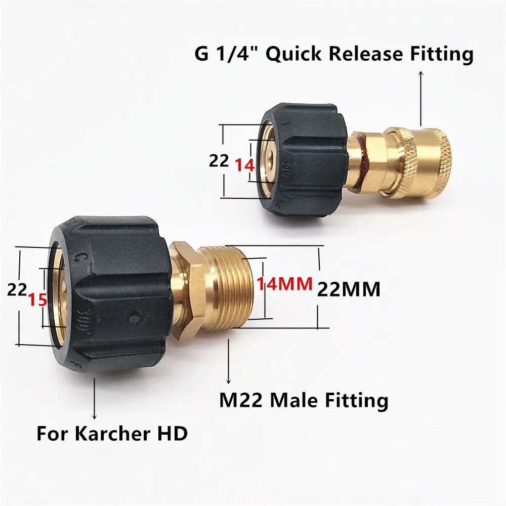 HNYRI Copper Thread Nozzle M22 14mm Fitting to G1/4" Quick Connect 22*1.5MM 15MM for Karcher HD Water Clearner Washing Machine