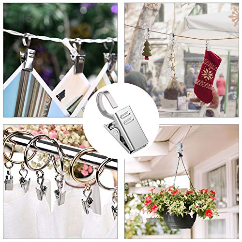 Design unico: Con il design ampio e piatto del gancio, queste clip per tende in acciaio inossidabile possono essere appese a qualsiasi asta o corda, che è più solida, più stabile e ha una maggiore durata.
