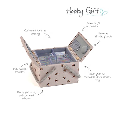 Hobby Gift Esclusiva grande scatola da cucito con due coperchi, scatola portaoggetti artigianale, vassoio per accessori, puntaspilli, manici in PVC, 25 x 25 x 17 cm, ape