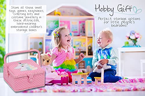 Hobby Gift Esclusiva piccola scatola da cucito, scatola portaoggetti artigianale, vassoio per accessori, puntaspilli, manico in PVC, 20 x 20 x 11 cm, unicorno
