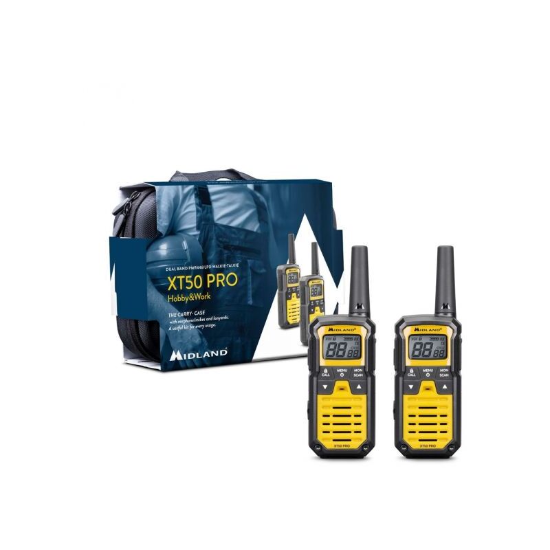 Walkie Talkie in valigetta full optional Midland migliora la linea d'eccellenza XT e la rende PROfessionale. Cosa significa? Più funzioni, miglior performance e maggior sicurezza. XT50 PRO amplia decisamente le sue prestazioni con una banda di frequenza più estesa, 121 subtoni, 6 livelli di vox, l'impermeabilità di livello IPX2, lo special channel RRM (Rete Radio Montana): strumento principe per segnalare emergenze. Caratteristiche tecniche VOX per comunicazioni a mani libere con 6 livelli selezionabili Call Sì Peso 94g Scan Sì Toni 38 toni CTCSS in TX e RX e 83 toni DCS Canali 85 canali: 69 LPD + 16 PMR446 Scocca ABS Display Display a cristalli liquidi con retroilluminazione Frequenza Dual Band LPD/PMR446 Roger Beep Sì WaterProof IPX2 Alimentazione Pacco batteria Auto Power Save Sì Blocco Tastiera Sì Presa Accessori 2 Pin Midland Dimensione LxAxP 102x49x30mm Potenza di Uscita Potenza: 500mW ERP (PMR446);