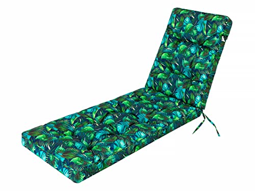 HOBBYGARDEN Cuscino per sedia a sdraio, 201 x 55 x 8 cm, comodo cuscino imbottito per lettino, sedia a sdraio, cuscino con foglie blu