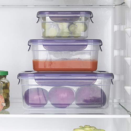 Hoberg Barattoli in plastica Viola, 10 x 7,5 x 5,5 cm (200 ml), 13 x 9,5 x 6 cm (500 ml), 2 17,5 x 13 x 7, (1100 ml), 1 Barattolo + Coperchio: Circa 22,5 x 16 x 8,5 cm (2 cm 100 ml).