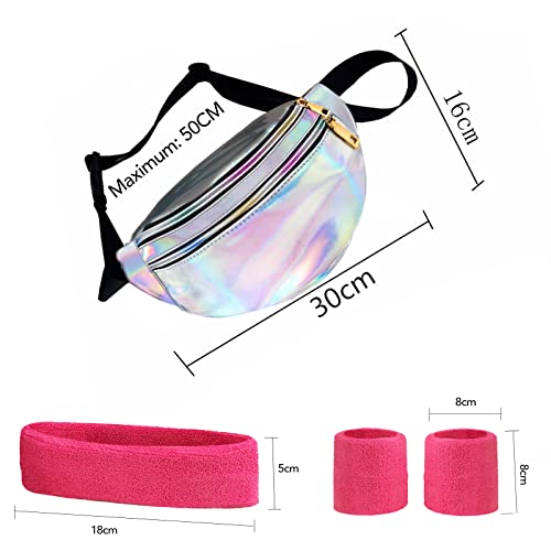 HOBIANO 4 Pezzi Accessori per Costumi Anni '80 '90 Fascia per Cappelli 2 Bracciali Sudore Neon Marsupio Accessori Hip Pop Sportivo Travestimento per Donna Uomo Festa Carnevale Partito (Rosa +Argento)