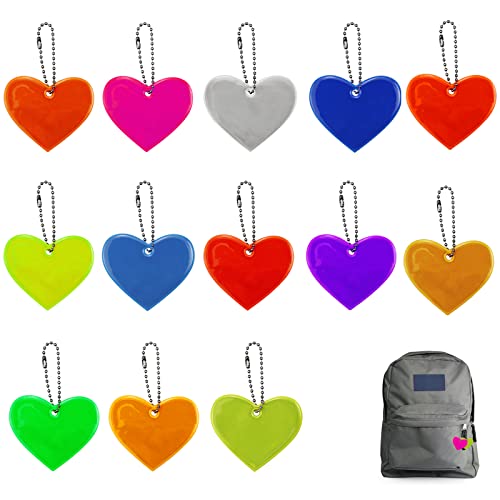 Hocadon 13 Pezzi Ciondolo Riflettente di Sicurezza, Pendente per Riflettore per Bambini, Ciondolo Catarifrangente di Sicurezza con Catena per Zaini Corsa Ciclismo Borse da Scuola(Cuore)