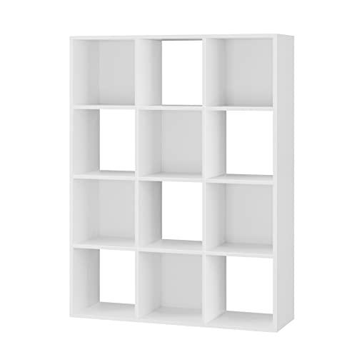 HOCSOK Libreria Scaffale, Libreria a 12 Cubi Aperti, Mobiletto Salvaspazio, Adatto per Studio, Ufficio, Soggiorno, Legno, Bianco, 91x29x120cm