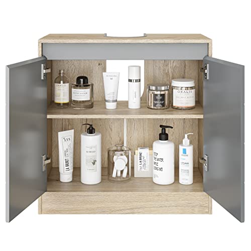 HOCSOK Mobile Sottolavabo per Bagno, Armadietto Sottolavello Salvaspazio con 2 Ante e Divisori Regolabili, Armadio Salvaspazio in Legno Color Rovere, 60 x 30 x 60 cm